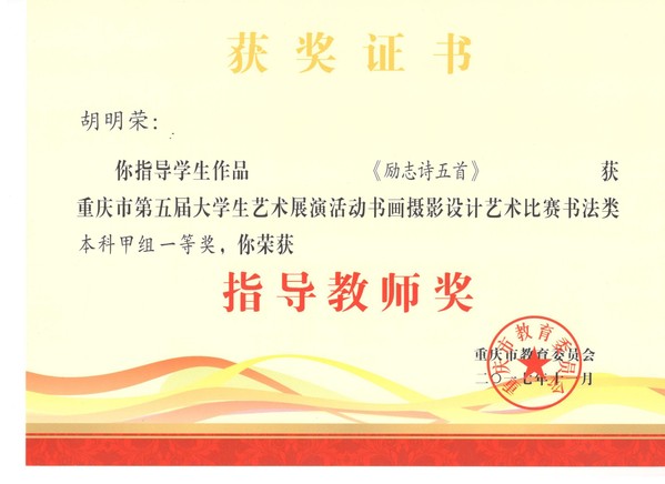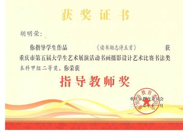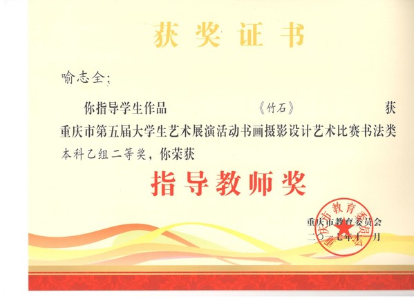 重庆市第五届老员工艺术作品展演活动,经过校内初赛选拔,然后选送到重庆市参加复赛和决赛,最近落下帷幕。其中书法类比赛中公司员工分获本科院校一二三等奖:
