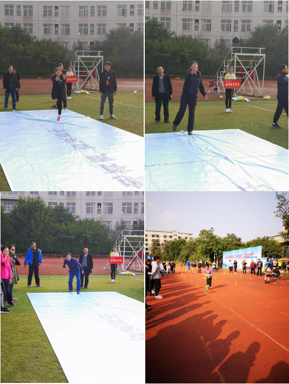 此次教职工趣味运动会设置了步步生花、同舟共济、掷地有声、鱼跃龙门、携手共进五个项目。在趣味运动“同舟共济”的赛场上,老师们同心协力向一步步终点前进,笨拙又认真的的可爱模样萌翻了全场。在“掷地有声”项目中,老师们小心翼翼地掷球,表面镇定自若,实则气氛紧张;“携手共进”的项目中老师们迅速集结,讨论战术,哨声响,老师们奋力奔跑,最终形成牢固的“链条”,大家手拉手、心连心,共同实现了目标。比赛充满着挑战性,不但要斗勇而且斗智,欢快而又紧张。