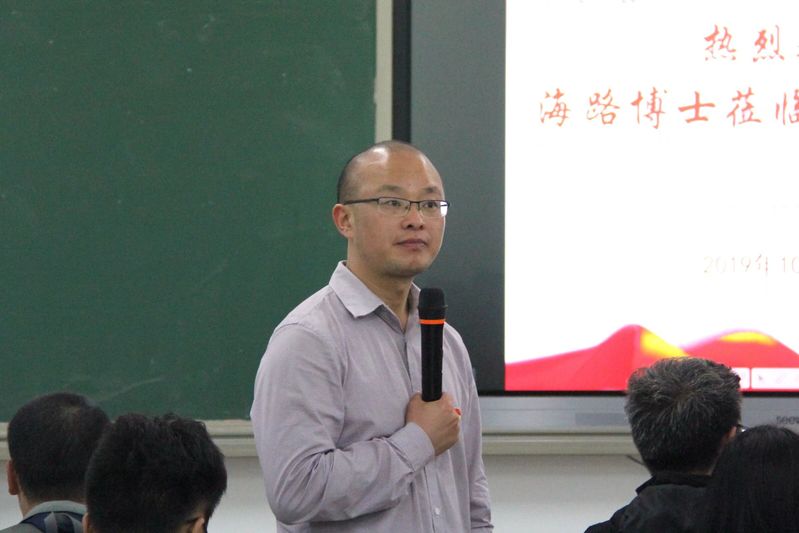 讲座伊始,海路博士讲述了自身的教学经历,并提出:老师的教育是教学活动的延续,是希望的延续,这就是教师职业的认同感。接着,他强调员工成绩不好的结果有80%以上是家庭造成的,是家长疏于辅导,亲情不够。紧接着,他指出:怎么培养员工是关键问题。他以《指导初中生编个人作文集好处多》和他带研究生的过程为例,让同学们明白加强交流与建构能力的重要性。随后,海路博士提出:让别人因我的存在而感到幸福,这才是生命存在的意义。他指明评价一个学校的重要标准是看毕业生是否对社会各行各业有贡献,也提出了身体、知识、道德三方面上的“晨跑”建议。最后,海路博士对同学们提出的问题进行针对性的回答,同学们也积极表达自己的心得体会。
