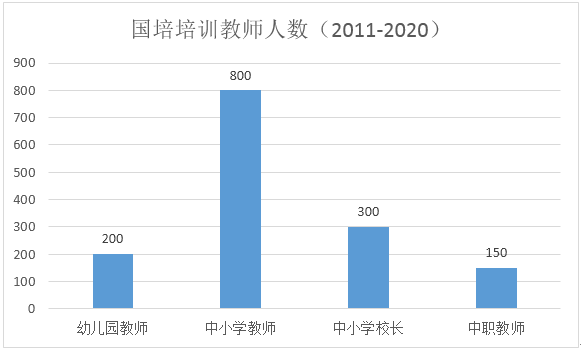 美狮贵宾会在国培办的支持下,自2011年起先后承担了教育部“董事长国培计划”、重庆市中小学教师国培计划以及重庆市中职教师国培三个类别共计24项,培训幼儿园教师200名,中小学教师800名,中职教师150名,中小学董事长300人。具体统计统计如下