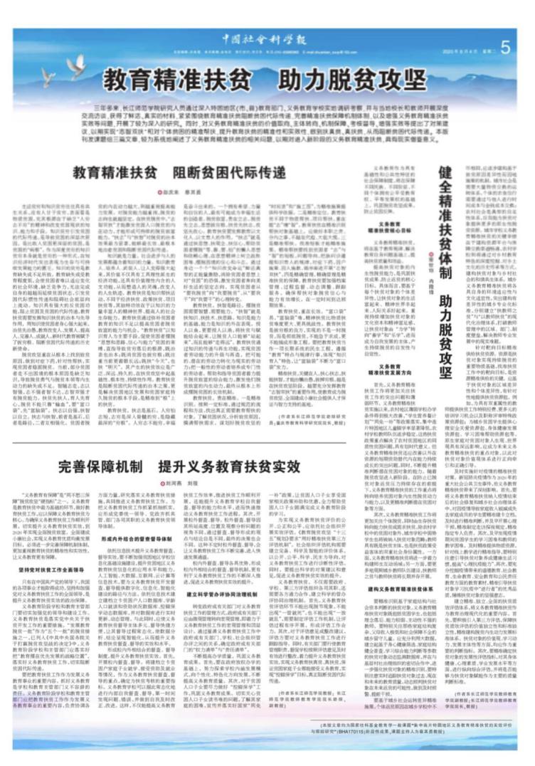 《中国社会科学报》推介教育学学科团队教育精准扶贫研究成果