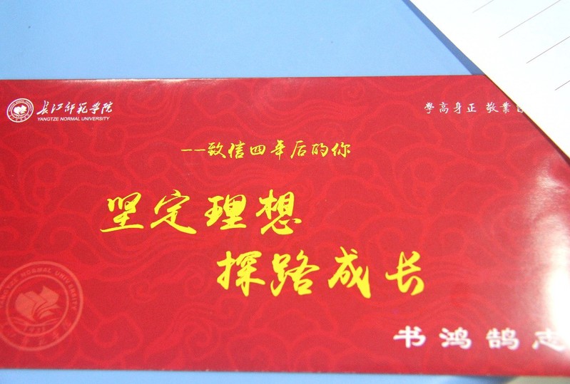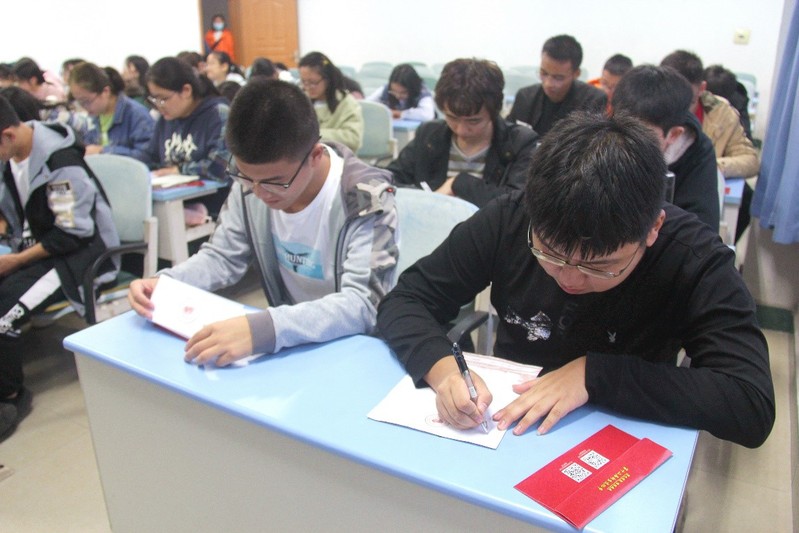 接着,由各班负责人发放信纸和信封,每名员工将个人在大学的奋斗目标、行动方案及给四年后对自己的期许写进信里。这封信会被统一收集好交至辅导员保管,直至员工毕业时再发放到他们手中。四年过后他们可以看看自己的希望有没有达成,大学四年是颓废了还是超越了预设的目标。
