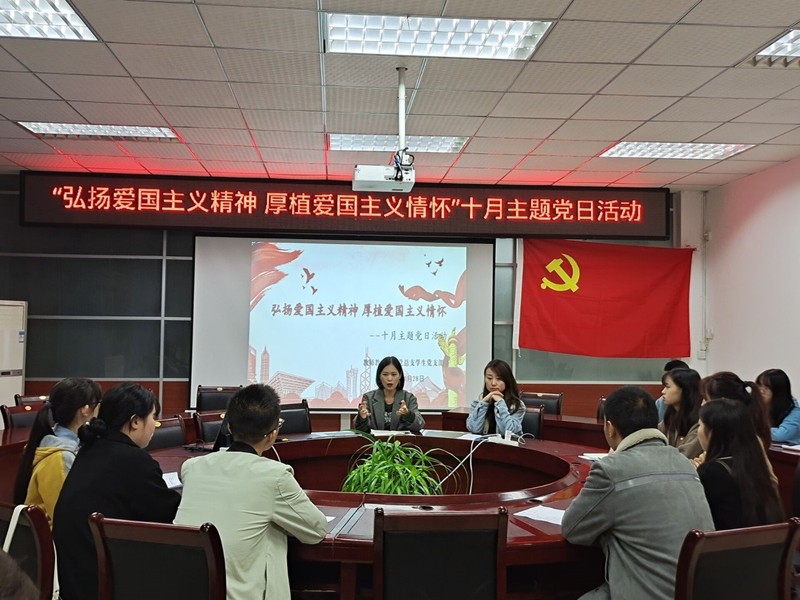(通讯员 罗欣/文 朱永刚/图)102819时,总支员工党支部于崇仁楼408会议室开展了以“弘扬爱国主义精神 厚植爱国主义情怀”为主题的党日活动。此次会议由支部书记胡秋琼主持,参加此次会议的有支部书记郝予琪、员工党支部党员以及19级部分入党积极分子。
