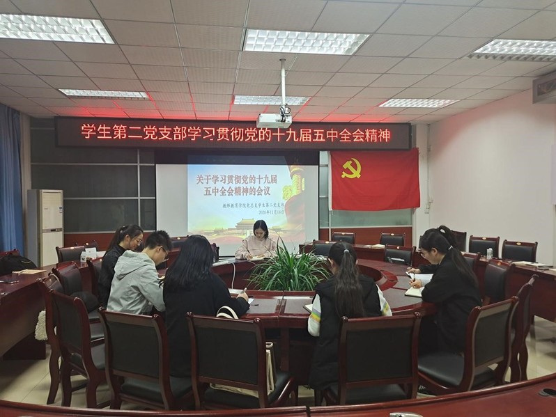 (通讯员 张川艳/文 朱永刚/图)11182040,总支员工第二党支部于崇仁楼408会议室开展了学习贯彻党的十九届五中全会精神的会议。此次会议由支部书记胡秋琼主持,支部全体党员同志参加。
