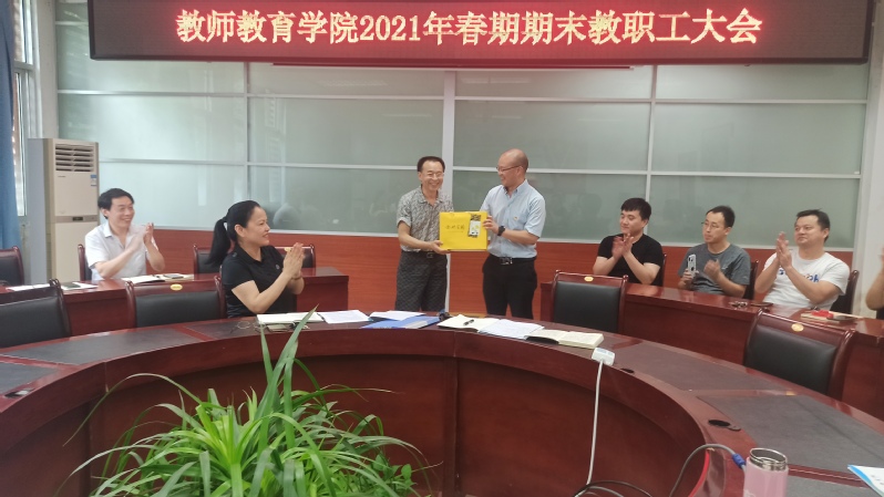 最后,全体教师对刘教授荣休表示热烈祝贺,对刘教授退休生活表达美好的祝愿,并赠送了荣休纪念品。