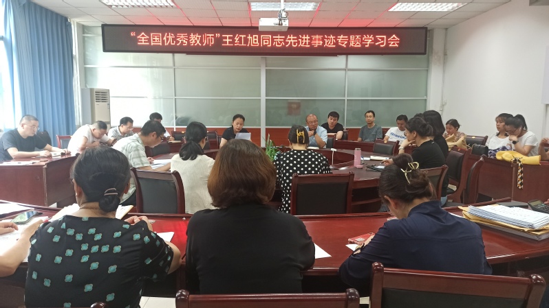 年仅35岁的王红旭同志见义勇为、英勇牺牲的先进事迹让与会教师深受感动。大家纷纷表示,王红旭以高尚的道德品质和感天动地的英勇壮举践行了舍己为人、见义勇为的大爱精神,彰显了大爱、大情怀精神,诠释了“四有”好老师的深刻内涵,要以王红旭老师为榜样,始终牢记教育初心、不忘育人使命,进一步提振干事创业的精气神。