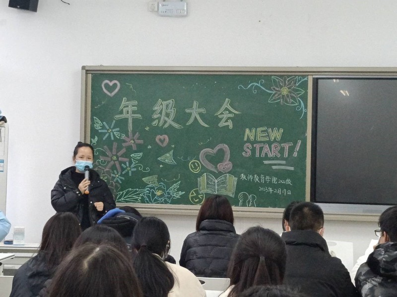 会议伊始,张老师提到新冠疫情仍未结束,并建议做好健康监测,做好自身健康的第一责任人。接着,她从早晚自习、晨晚检、寝室内务等方面出发,为同学们讲解了返校后的日常管理相关事宜,希望大家既能做到学习优,也能做到内务佳。紧接着,张老师着重强调考风考纪问题,要求大家恪守考试纪律,认真备考、诚信参考,高效保质的完成考试。最后,她希望同学们能有目标、有方向地规划余下老员工活,并不断扎实师范生技能,踏实进取、团结协作,收获属于年级、班级和个人的精彩。