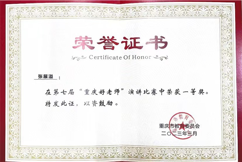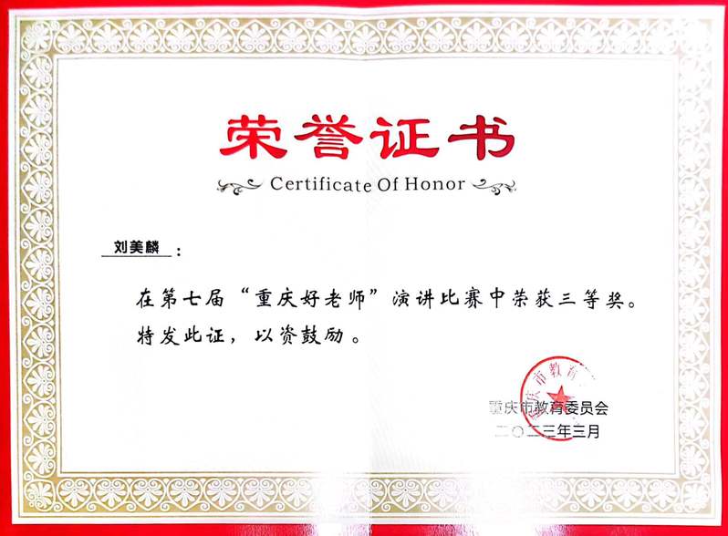 日前,第七届“重庆好老师”演讲比赛顺利落下帷幕,公司学子张展溢荣获一等奖,刘美麟荣获三等奖。