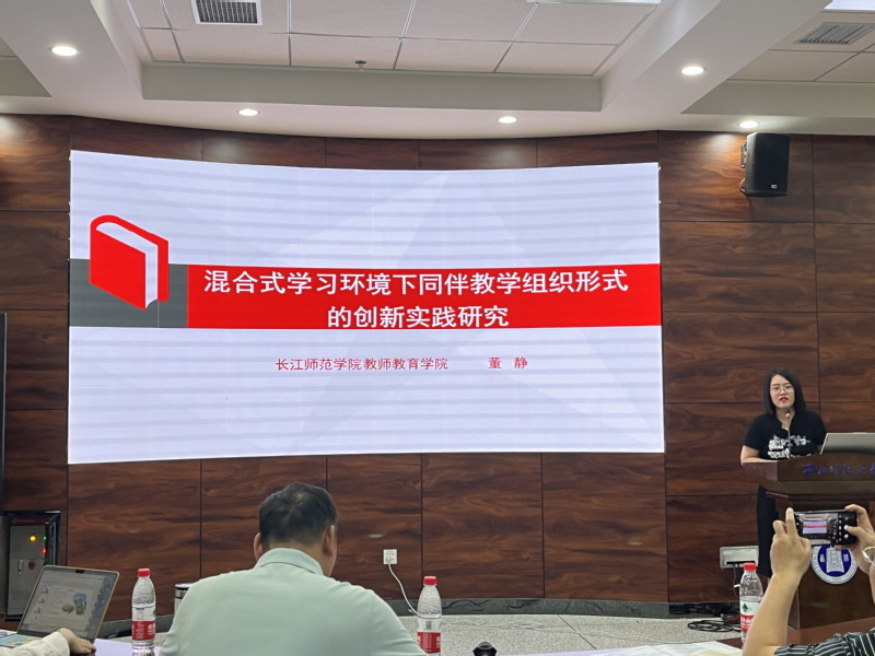 公司董静教授向大会提交了学术论文《混合式学习环境下同伴教学组织形式的创新实践研究》,该论文是基于重庆市线上线下混合式一流课程实践产出的理论研究成果,为推动混合式课程与教学变革提供了重要的借鉴价值。董静教授在会上进行了学术研究成果的展示和交流,报告引起了与会者极大的兴趣,针对会上的互动提问,董静教授进行了现场解答。