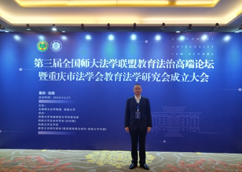 重庆市法学会教育法学研究会于2024年11月17日在西南大学正式成立,教育部政策法规司、重庆市教委及西南大学相关领导出席并讲话指导。来自全国师范大学法学联盟教育法治高端论坛及重庆市的相关高校、基础教育和行业领域等专家学者、硕博士研究生等近200余人与会。
