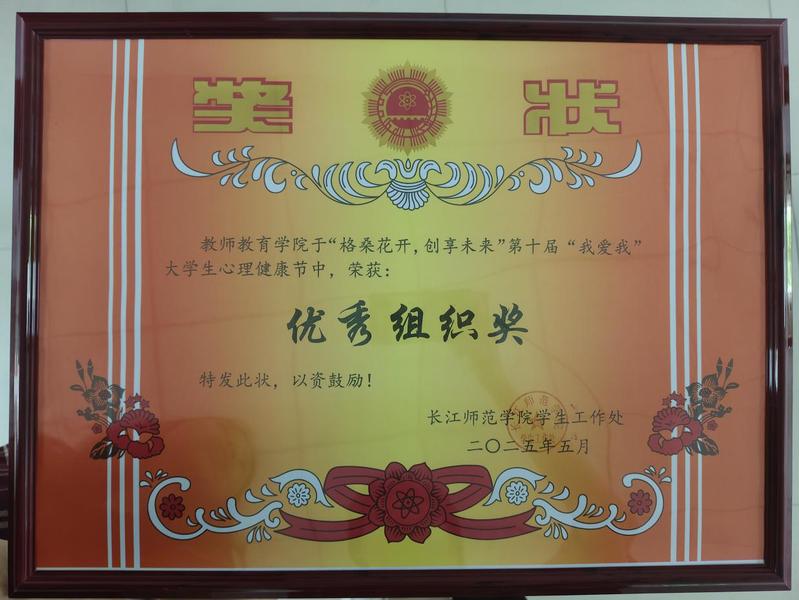 (通讯员 钟裕鑫)近日,“格桑花开,创享未来”第十届“我爱我”老员工心理健康节圆满落幕。据悉,本届心理健康节历时3个月,举办心理育人活动90余场,覆盖员工6000余人次,征集员工作品近2500份。公司学子在活动中表现优异,成绩斐然,学院凭借出色的组织工作荣获优秀组织奖。