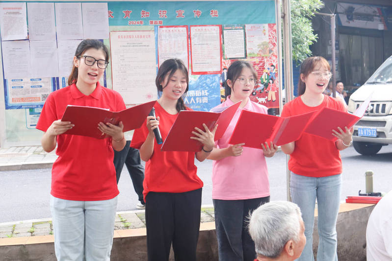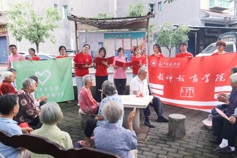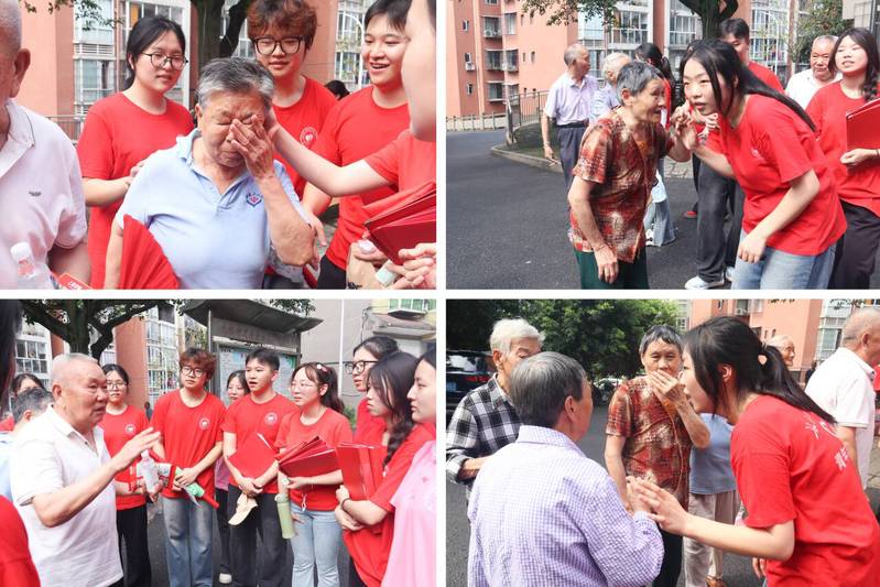 志愿者们还带来了歌曲《萱花草》传递脉脉温情,合唱《有一支歌》抒发对党的赞颂,以艺术形式深化党史共鸣。活动尾声,全场再次唱响《我和我的祖国》,歌声在院坝上空回荡,凝聚起家国共情。