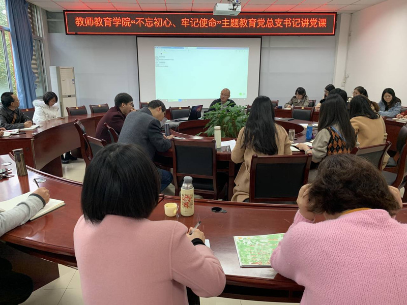 (通讯员 关鸿/文 邓钰航/图)11月13日下午3时,公司党总支于崇仁楼408会议室顺利开展了“不忘初心,牢记使命”主题教育党总支书记讲党课活动。公司全体师生党员参与了此次会议,会议由公司党总支书记冉隆锋主持。会议伊始,冉书记传达本次课堂学习的主题是:“讲政治,敢担当,发挥模范带头作用,扎实推进新师范建设”,并指出此次活动将从深刻理解“不忘初心,牢记使命”内涵、找出“不忘初心,牢记使命”主题教育的差距与不足、...